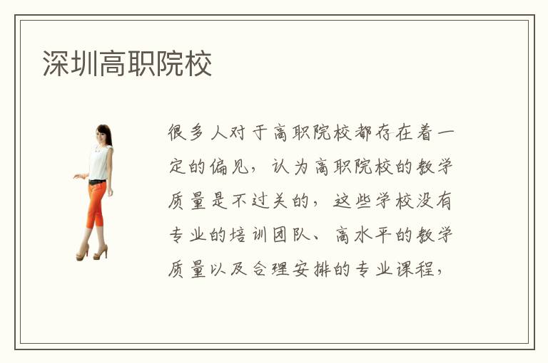 很多人對(duì)于高職院校都存在著一定的偏見(jiàn),認(rèn)為高職院校的教學(xué)質(zhì)量是不過(guò)關(guān)的,這些學(xué)校沒(méi)有專(zhuān)業(yè)的培訓(xùn)團(tuán)隊(duì)、高水平的教學(xué)質(zhì)量以及合理安排的專(zhuān)業(yè)課程,對(duì)于專(zhuān)業(yè)技術(shù)的學(xué)習(xí)是沒(méi)有幫助的。然而這種說(shuō)法并不在絕對(duì)的,也有些職業(yè)學(xué)院的教學(xué)是很靠譜的。深圳高職院校成立多年通過(guò)自身的教學(xué)實(shí)力,充分證明了高職院校也是有靠譜的,也為深圳高職院校贏得了良好的口碑。