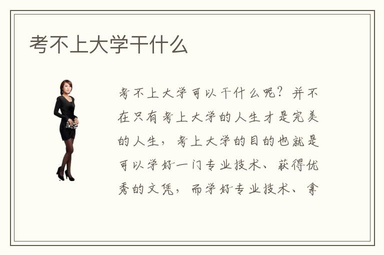 考不上大學可以干什么呢?并不在只有考上大學的人生才是完美的人生,考上大學的目的也就是可以學好一門專業(yè)技術(shù)、獲得優(yōu)秀的文憑,而學好專業(yè)技術(shù)、拿到好文憑的根本也就是為了能讓自己的就業(yè)道路更加順利?,F(xiàn)如今企業(yè)更看中的是求職者的專業(yè)技術(shù)好不好,而考不上大學的同學也可以通過專業(yè)的職業(yè)技術(shù)培訓學校進行學習,這也是大多數(shù)高考落榜生選擇的學習方式之一。