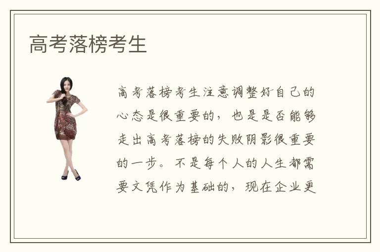 高考落榜考生注意調(diào)整好自己的心態(tài)是很重要的,也是是否能夠走出高考落榜的失敗陰影很重要的一步。不是每個(gè)人的人生都需要文憑作為基礎(chǔ)的,現(xiàn)在企業(yè)更看中的是專業(yè)技術(shù)可靠的人才,因此高考落榜考生不能對自己的未來失去希望,要為自己今后的人生確立目標(biāo),充分考慮到國內(nèi)各大市場的發(fā)展情況,要根據(jù)自己實(shí)際情況以及想要學(xué)習(xí)的專業(yè)特點(diǎn)進(jìn)行合理的課程專業(yè)的安排。