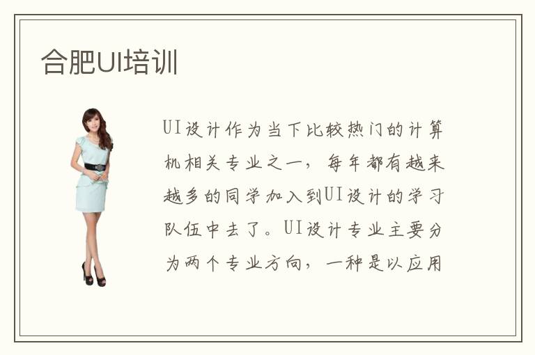 UI設(shè)計作為當(dāng)下比較熱門的計算機相關(guān)專業(yè)之一,每年都有越來越多的同學(xué)加入到UI設(shè)計的學(xué)習(xí)隊伍中去了。UI設(shè)計專業(yè)主要分為兩個專業(yè)方向,一種是以應(yīng)用軟件的界面美觀程度設(shè)計為主的應(yīng)用軟件ui界面設(shè)計,還有一種就是以應(yīng)用軟件的交互設(shè)計方面為主的應(yīng)用軟件ui交互設(shè)計。這兩種不同的專業(yè)方向需要學(xué)習(xí)的專業(yè)課程也是不同的,合肥UI培訓(xùn)機構(gòu)為這兩種專業(yè)制定了不同的學(xué)習(xí)課程。