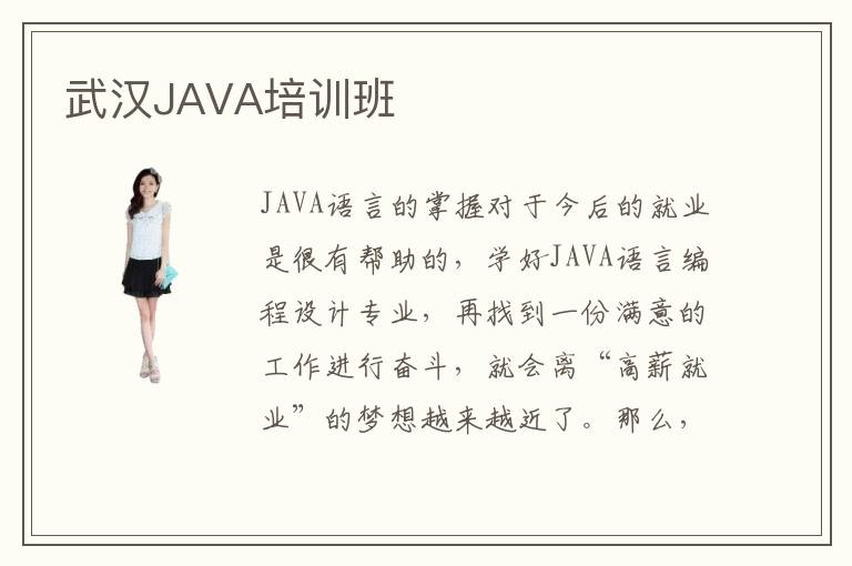 JAVA語(yǔ)言的掌握對(duì)于今后的就業(yè)是很有幫助的,學(xué)好JAVA語(yǔ)言編程設(shè)計(jì)專業(yè),再找到一份滿意的工作進(jìn)行奮斗,就會(huì)離“高薪就業(yè)”的夢(mèng)想越來(lái)越近了。那么,怎樣才能學(xué)好JAVA語(yǔ)言編程設(shè)計(jì)專業(yè)呢?首先當(dāng)然是進(jìn)行各大JAVA語(yǔ)言編程設(shè)計(jì)培訓(xùn)班的篩選啦,要找出最適合自己學(xué)習(xí)得培訓(xùn)班。那么,你知道這么多的武漢JAVA培訓(xùn)班,究竟最適合你學(xué)習(xí)的是哪家呢?你該選擇的武漢JAVA培訓(xùn)班應(yīng)該是哪家呢?