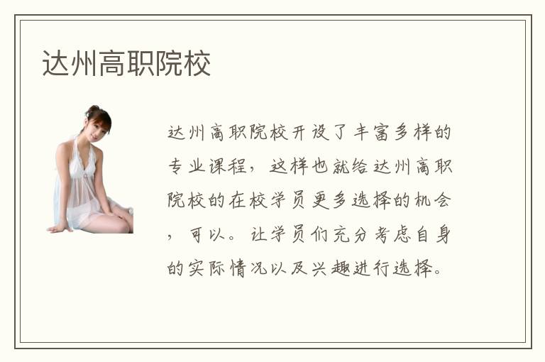 達(dá)州高職院校開設(shè)了豐富多樣的專業(yè)課程,這樣也就給達(dá)州高職院校的在校學(xué)員更多選擇的機(jī)會,可以。讓學(xué)員們充分考慮自身的實際情況以及興趣進(jìn)行選擇。不同的專業(yè)所需要學(xué)習(xí)的專業(yè)課程是不同的,那么,達(dá)州高職院校給學(xué)員們安排哪些相關(guān)專業(yè)課程呢?根據(jù)市場的不斷變化,為了能夠使得達(dá)州高職院校學(xué)員在畢業(yè)后擁有更大優(yōu)勢,達(dá)州高職院校所安排的課程也在做相應(yīng)的調(diào)整。