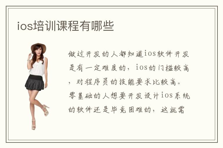 做過開發(fā)的人都知道ios軟件開發(fā)是有一定難度的,ios的門檻較高,對程序員的技能要求比較高。零基礎(chǔ)的人想要開發(fā)設(shè)計ios系統(tǒng)的軟件還是畢竟困難的,這就需要大家去專業(yè)的ios培訓班進行學習。那么,ios培訓課程有哪些呢?培訓班比較注重人才質(zhì)量的培養(yǎng),讓學生從基礎(chǔ)知識開始學起,由淺入深,并且注重實踐,培養(yǎng)學生的動手操作能力,并不是紙上談兵。