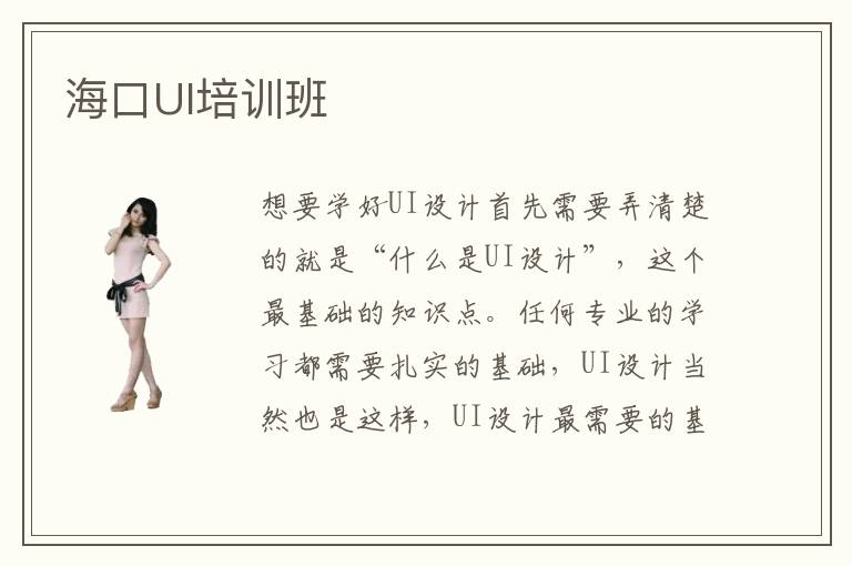 計算機相關(guān)專業(yè)一般是男生學(xué)習(xí)的比較多,但是為了今后的就業(yè)路途可以更順利些,有些女生也開始想要學(xué)習(xí)計算機專業(yè)了。然而計算機專業(yè)需要清晰的邏輯思維能力以及冷靜的分析頭腦,對于。一般女生而言學(xué)習(xí)起來還是比較具有難度的。而UI設(shè)計作為計算機專業(yè)中最適合女生學(xué)習(xí)的,在國內(nèi)目前也具有廣泛的發(fā)展前景。那么,??赨I培訓(xùn)班怎么樣呢?適不適合零基礎(chǔ)的女生學(xué)習(xí)呢?