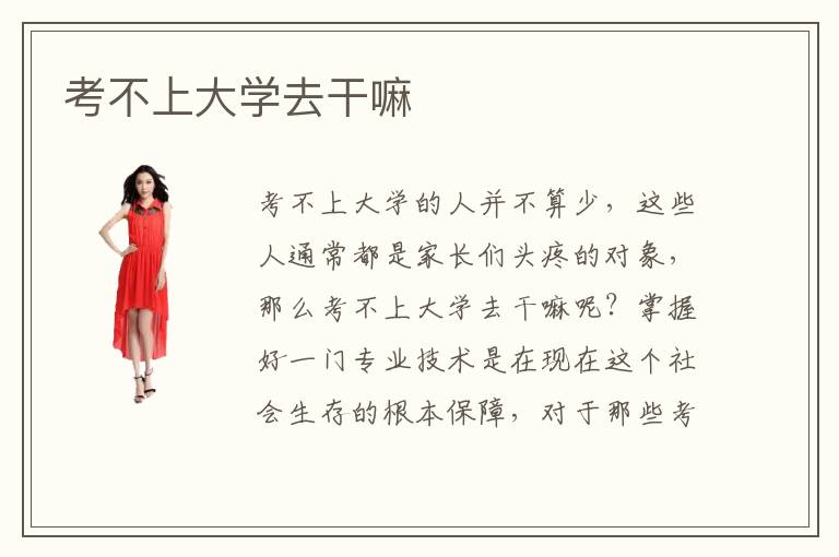 考不上大學(xué)的人并不算少,這些人通常都是家長(zhǎng)們頭疼的對(duì)象,那么考不上大學(xué)去干嘛呢?掌握好一門專業(yè)技術(shù)是在現(xiàn)在這個(gè)社會(huì)生存的根本保障,對(duì)于那些考不上大學(xué)的人來(lái)說(shuō)也是一樣的,學(xué)好一門專業(yè)技術(shù)是很有必要的??疾簧洗髮W(xué)首要任務(wù)就是了解社會(huì)發(fā)展的前景趨勢(shì),選擇一門適合自己學(xué)習(xí)并且就業(yè)前景廣闊的專業(yè)進(jìn)行學(xué)習(xí),因此考不上大學(xué)的同學(xué)可以考慮去上一些專業(yè)技術(shù)培訓(xùn)學(xué)校。
