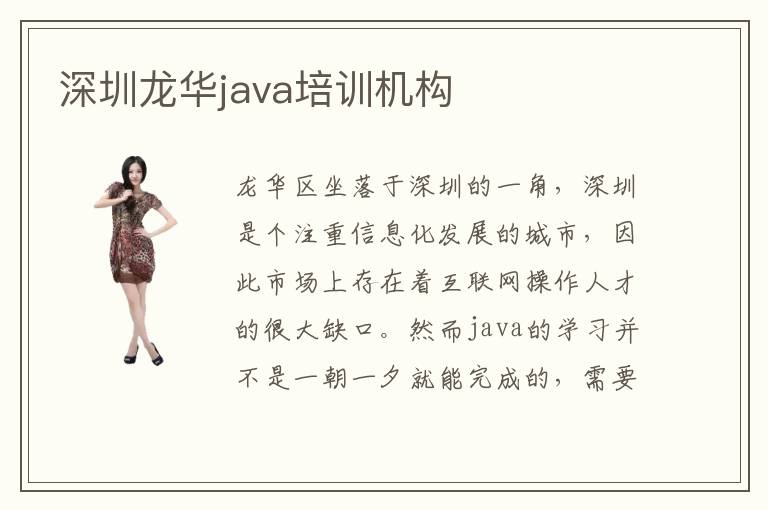 龍華區(qū)坐落于深圳的一角,深圳是個注重信息化發(fā)展的城市,因此市場上存在著互聯(lián)網(wǎng)操作人才的很大缺口。然而java的學(xué)習(xí)并不是一朝一夕就能完成的,需要有一定的邏輯思維和理解能力,要學(xué)會舉一反三,是一個漫長枯燥的過程。因此自學(xué)這個方法并不適合大多數(shù)的人,自制力不強的人還是選擇去專業(yè)的培訓(xùn)機構(gòu)學(xué)習(xí)吧。那么,你知道深圳龍華java培訓(xùn)機構(gòu)哪些比較好呢?