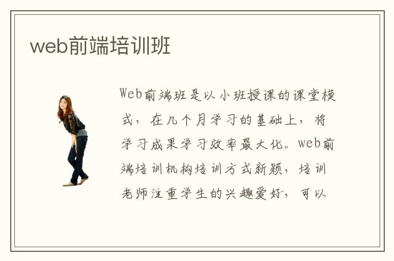 Web前端班是以小班授課的課堂模式,在幾個月學(xué)習(xí)的基礎(chǔ)上,將學(xué)習(xí)成果學(xué)習(xí)效率最大化。web前端培訓(xùn)機構(gòu)培訓(xùn)方式新穎,培訓(xùn)老師注重學(xué)生的興趣愛好,可以讓學(xué)生充分體驗到學(xué)習(xí)的樂趣。web前端培訓(xùn)學(xué)校的選擇有一定的考究,需要參考web前端培訓(xùn)班的口碑情況的好壞。web前端培訓(xùn)班教學(xué)成果怎么樣?web前端培訓(xùn)機構(gòu)培訓(xùn)項目豐富嗎?