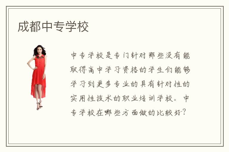 成都中專學(xué)校有哪些,鍍金池小編通過整理大致收錄這些供廣大學(xué)員參考:成都鐵路工程學(xué)校、成都鐵路衛(wèi)生學(xué)校、成都中醫(yī)藥大學(xué)附屬醫(yī)院針灸學(xué)校、成都市工業(yè)職業(yè)技術(shù)學(xué)校、成都市體育運動學(xué)校、成都市蜀興職業(yè)中學(xué)、成都石化工業(yè)學(xué)校、成都電子信息學(xué)校、成都市華陽職業(yè)中學(xué)、成都實用工程技術(shù)學(xué)校、成都青華職業(yè)學(xué)校