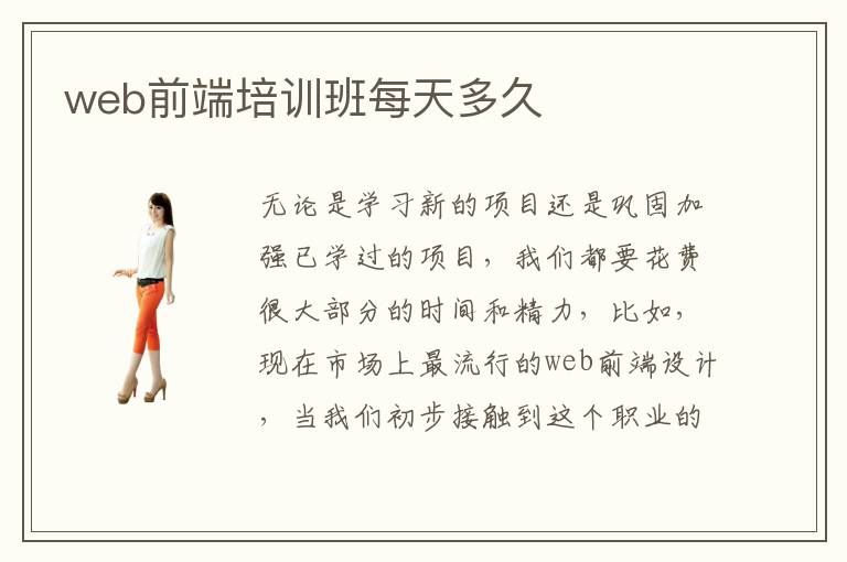 無(wú)論是學(xué)習(xí)新的項(xiàng)目還是鞏固加強(qiáng)已學(xué)過(guò)的項(xiàng)目,我們都要花費(fèi)很大部分的時(shí)間和精力,比如,現(xiàn)在市場(chǎng)上最流行的web前端設(shè)計(jì),當(dāng)我們初步接觸到這個(gè)職業(yè)的時(shí)候,可能對(duì)它不甚了解,所以,進(jìn)入web前端培訓(xùn)班學(xué)習(xí)就顯得尤為必要了。那么,web前端培訓(xùn)班每天學(xué)習(xí)培訓(xùn)的時(shí)間是多久?web前端培訓(xùn)班的培訓(xùn)周期是多少時(shí)間?web前端培訓(xùn)班培訓(xùn)時(shí)長(zhǎng)?