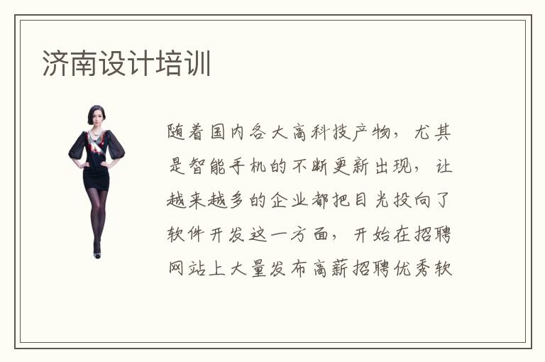 濟(jì)南設(shè)計(jì)培訓(xùn)是廣大濟(jì)南地區(qū)的設(shè)計(jì)師互相交流、探討學(xué)習(xí)的平臺(tái),也是最有效學(xué)習(xí)設(shè)計(jì)專(zhuān)業(yè)的地方。濟(jì)南設(shè)計(jì)培訓(xùn)會(huì)根據(jù)目前國(guó)內(nèi)的就業(yè)形勢(shì)開(kāi)設(shè)多種課程培訓(xùn),針對(duì)學(xué)員的就業(yè)問(wèn)題,也會(huì)根據(jù)企業(yè)對(duì)于專(zhuān)業(yè)設(shè)計(jì)人才的要求,不斷更新課程安排,努力為每一位學(xué)員今后的就業(yè)問(wèn)題做打算。濟(jì)南設(shè)計(jì)培訓(xùn)機(jī)構(gòu)專(zhuān)注于培養(yǎng)設(shè)計(jì)專(zhuān)業(yè)人才十多年了,有著豐富的設(shè)計(jì)專(zhuān)業(yè)教學(xué)經(jīng)驗(yàn)。