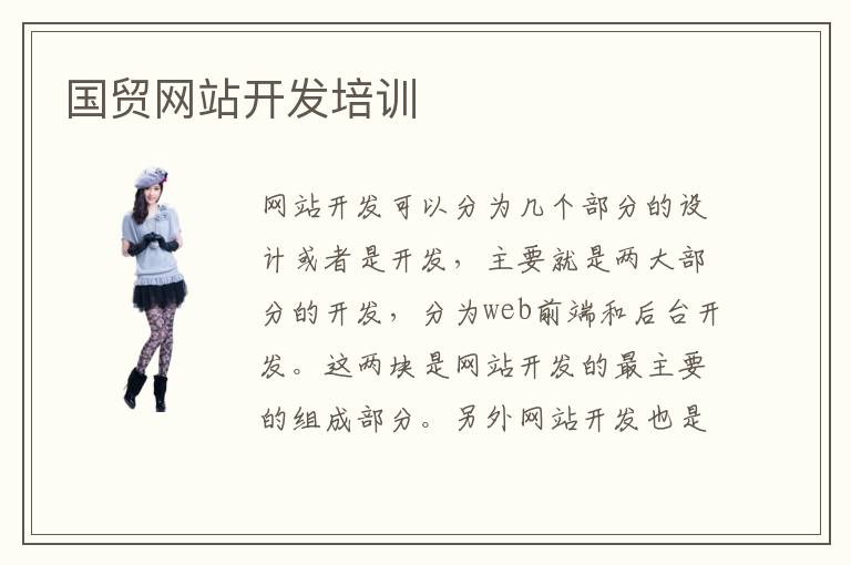 網(wǎng)站開發(fā)可以分為幾個部分的設(shè)計(jì)或者是開發(fā),主要就是兩大部分的開發(fā),分為web前端和后臺開發(fā)。這兩塊是網(wǎng)站開發(fā)的最主要的組成部分。另外網(wǎng)站開發(fā)也是基于互聯(lián)網(wǎng)或者是瀏覽器的網(wǎng)頁開發(fā),具有比較強(qiáng)的互動性。網(wǎng)站開發(fā)也是由很多部分組成的一個集合。國貿(mào)網(wǎng)站開發(fā)培訓(xùn)機(jī)構(gòu)有:北大青鳥,中軟卓越,甲骨文和兄弟連。這些國貿(mào)網(wǎng)站開發(fā)培訓(xùn)機(jī)構(gòu)的都是專門培訓(xùn)網(wǎng)站開發(fā)技術(shù)的地方。在教學(xué)上,也有多年的經(jīng)驗(yàn)。是業(yè)內(nèi)比較有說服力的國貿(mào)網(wǎng)站開發(fā)培訓(xùn)機(jī)構(gòu)。那么這些國貿(mào)網(wǎng)站開發(fā)培訓(xùn)學(xué)費(fèi)多少呢?據(jù)了解,在10000-15000之間,可能前期的付出會比較多,但是如果你是以你最認(rèn)真的態(tài)度學(xué)習(xí),并且你對此保持了一顆熱愛之心,那么你的這么多付出得到的可能性很大。