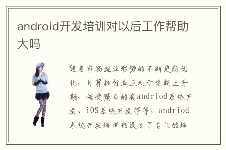 隨著市場(chǎng)就業(yè)形勢(shì)的不斷更新優(yōu)化,計(jì)算機(jī)行業(yè)正處于壟斷上升期,倍受矚目的有andriod系統(tǒng)開發(fā)、iOS系統(tǒng)開發(fā)等等,andriod系統(tǒng)開發(fā)培訓(xùn)也設(shè)立了專門的培訓(xùn)機(jī)構(gòu),為了順應(yīng)互聯(lián)網(wǎng)時(shí)代的需求,很多人進(jìn)入andriod開發(fā)培訓(xùn)學(xué)院學(xué)習(xí)開發(fā)技術(shù)。andriod開發(fā)培訓(xùn)對(duì)以后工作幫助大嗎?andriod開發(fā)培訓(xùn)價(jià)值應(yīng)該如何進(jìn)行衡量?andriod開發(fā)培訓(xùn)的工作就業(yè)前景好嗎?