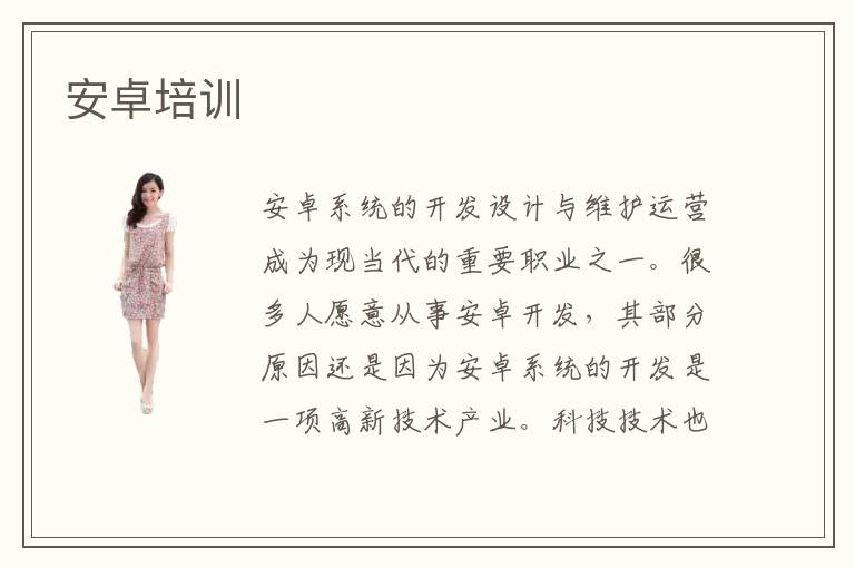安卓系統(tǒng)的開發(fā)設(shè)計(jì)與維護(hù)運(yùn)營成為現(xiàn)當(dāng)代的重要職業(yè)之一。很多人愿意從事安卓開發(fā),其部分原因還是因?yàn)榘沧肯到y(tǒng)的開發(fā)是一項(xiàng)高新技術(shù)產(chǎn)業(yè)??萍技夹g(shù)也越來越發(fā)達(dá),因此,更多的企業(yè)對安卓開發(fā)人員的專業(yè)要求也越來越高,適當(dāng)?shù)倪M(jìn)行安卓培訓(xùn)以強(qiáng)化自身的專業(yè)技能來應(yīng)對變化無常的市場需求乃是應(yīng)對之舉。問題來了,安卓培訓(xùn)到底哪家好?安卓培訓(xùn)又是哪個(gè)好呢?