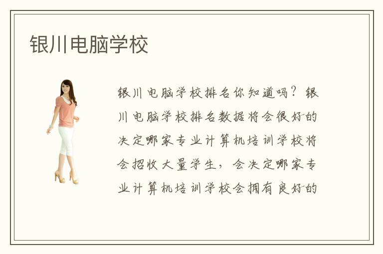 銀川電腦學(xué)校排名你知道嗎?銀川電腦學(xué)校排名數(shù)據(jù)將會(huì)很好的決定哪家專(zhuān)業(yè)計(jì)算機(jī)培訓(xùn)學(xué)校將會(huì)招收大量學(xué)生,會(huì)決定哪家專(zhuān)業(yè)計(jì)算機(jī)培訓(xùn)學(xué)校會(huì)擁有良好的口碑,會(huì)決定哪家專(zhuān)業(yè)計(jì)算機(jī)培訓(xùn)學(xué)校會(huì)獲得各位學(xué)員、家長(zhǎng)以及企業(yè)的認(rèn)可。那么,銀川電腦學(xué)校排名數(shù)據(jù)是怎樣產(chǎn)生的呢?這是針對(duì)很多方面的了解、考察,產(chǎn)生的結(jié)果,因此銀川電腦學(xué)校排名數(shù)據(jù)還是大家選擇專(zhuān)業(yè)計(jì)算機(jī)培訓(xùn)學(xué)校很好的依據(jù)。