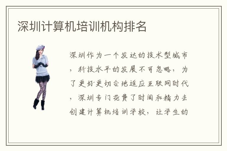 深圳作為一個發(fā)達的技術(shù)型城市,科技水平的發(fā)展不可忽略,為了更好更切合地適應(yīng)互聯(lián)網(wǎng)時代,深圳專門花費了時間和精力去創(chuàng)建計算機培訓(xùn)學(xué)校,讓學(xué)生的學(xué)習可以更加具有針對性??紤]到深圳計算機培訓(xùn)計算機培訓(xùn)機構(gòu)排名情況,我們可以更準確更可能選擇到自己認為性價比高的計算機培訓(xùn)機構(gòu),這樣的學(xué)習可以更深入。深圳計算機培訓(xùn)機構(gòu)排名情況表,深圳各家計算機培訓(xùn)比較情況如何?