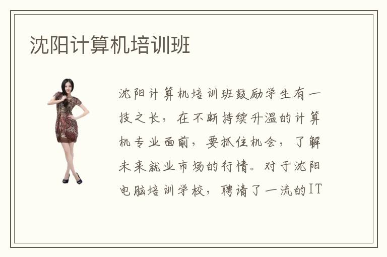 沈陽計(jì)算機(jī)培訓(xùn)班鼓勵(lì)學(xué)生有一技之長,在不斷持續(xù)升溫的計(jì)算機(jī)專業(yè)面前,要抓住機(jī)會(huì),了解未來就業(yè)市場的行情。對(duì)于沈陽電腦培訓(xùn)學(xué)校,聘請(qǐng)了一流的IT教育老師為學(xué)生進(jìn)行近距離的輔導(dǎo),又采用小班教學(xué)的學(xué)習(xí)課堂模式,為不同的學(xué)生制定一套特色的教學(xué)方案,提高學(xué)生的學(xué)習(xí)能力和學(xué)習(xí)效率,在面試時(shí)也可以增強(qiáng)信心。沈陽計(jì)算機(jī)培訓(xùn)班的具體位置是哪里?
