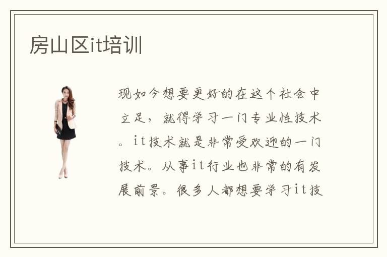 現(xiàn)如今想要更好的在這個社會中立足,就得學習一門專業(yè)性技術。it技術就是非常受歡迎的一門技術。從事it行業(yè)也非常的有發(fā)展前景。很多人都想要學習it技術。而學習it技術最好的地方就是房山區(qū)it培訓it培訓班。房山區(qū)it培訓班培訓設備非常的先進,提供給學員們非常好的學習體驗。所以有越來越的人都選擇到房山區(qū)it培訓班學習it技術。因為只有掌握了it技術才可以更好的在這社會中立足。才會更有競爭優(yōu)勢。房山區(qū)it培訓班非常有培訓人才方面的經(jīng)驗。所以房山區(qū)it培訓班非常的不錯。在這里真的可以學到非常多的知識。在找工作方面比較有優(yōu)勢。選擇房山區(qū)ui培訓班學習,完全可以放心一定能學會專業(yè)知識。很多學員都覺得自己的選擇正確。