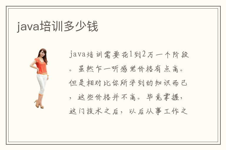 java培訓需要花1到2萬一個階段。雖然乍一聽感覺價格有點高。但是相對比你所學到的知識而已,這些價格并不高。畢竟掌握,這門技術之后,以后從事工作之后,每個月的薪資都不會低于8000。 所以說相比以后,現(xiàn)在花2000塊算得了什么?但是選擇java培訓你可以享受到優(yōu)質的教學水平,和專業(yè)的教師力量。還有就是可以獨立研發(fā)教學課程。java培訓有著嚴格的教學管理。促使你不斷的努力學習。培訓過后還會對你進行就業(yè)指導。幫你分析行業(yè)的發(fā)展和對你的要求。這些其實都是不錯的。畢竟現(xiàn)在最熱門的技術當屬java。雖然剛開始覺得學費交得高。但是經(jīng)過培訓之后,你就會覺得,老師講的都很讓人容易理解。給自己省了不少的學習時間。