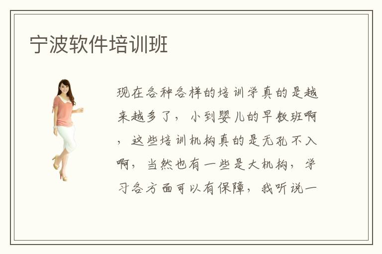 現(xiàn)在各種各樣的培訓(xùn)學(xué)真的是越來越多了,小到嬰兒的早教班啊,這些培訓(xùn)機構(gòu)真的是無孔不入啊,當(dāng)然也有一些是大機構(gòu),學(xué)習(xí)各方面可以有保障,我聽說一些小作坊比較坑的,收費不透明,報名費交過之后后期還要什么費用,人家收費還打著某一名義,讓你沒法拒絕那種,寧波軟件培訓(xùn)班應(yīng)該有這類的吧,但愿大家不遇到,畢竟現(xiàn)在各類培訓(xùn)班參差不齊,監(jiān)管力度不夠啊,避免不了一些小作坊掛著培訓(xùn)機構(gòu)的牌子就開始賺錢了,如果你想了解寧波軟件培訓(xùn)班,不妨先去網(wǎng)上搜一下排名靠前的,然后去他們官網(wǎng)問一下,課程費用介紹看看說法靠譜不,當(dāng)然你也可以去他們實體店看看的,一般大機構(gòu)有免費試聽的課程的,需要你提前申請預(yù)約的,一般培訓(xùn)一年左右可以拿到畢業(yè)證啊,還有培訓(xùn)機構(gòu)說是三個月就可以畢業(yè)上崗