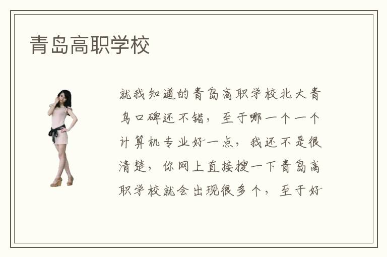 就我知道的青島高職學(xué)校北大青鳥口碑還不錯(cuò),至于哪一個(gè)一個(gè)計(jì)算機(jī)專業(yè)好一點(diǎn),我還不是很清楚,你網(wǎng)上直接搜一下青島高職學(xué)校就會(huì)出現(xiàn)很多個(gè),至于好不好,你直接看口碑怎么樣,還有就是熟人介紹的,身邊朋友有誰在那邊上學(xué),直接去問一下,現(xiàn)在學(xué)計(jì)算機(jī)編程的人還是很多的,我一個(gè)同事之前就是程序員,薪資待遇還是不錯(cuò)的,當(dāng)然也是很累的,經(jīng)常自嘲程序員的各種苦逼事情,還說自從學(xué)習(xí)了計(jì)算機(jī)編程就和妹子無緣了,哈哈,他們公司妹子實(shí)在是太少了,無處可撩啊,當(dāng)然你可以學(xué)習(xí)java,C語言程序這些啊,后期都是可以從事計(jì)算機(jī)行業(yè)的,現(xiàn)在任何一個(gè)電子產(chǎn)品都和編程代碼有關(guān),所以市場(chǎng)需要很大的,如果你下決心要學(xué)習(xí)計(jì)算機(jī),那就堅(jiān)持到底,不要半途而廢啊
