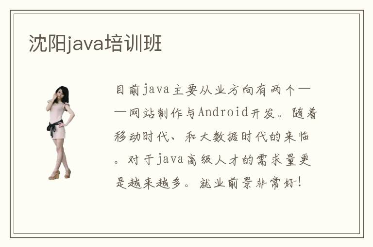 目前java主要從業(yè)方向有兩個——網(wǎng)站制作與Android開發(fā)。隨著移動時代、和大數(shù)據(jù)時代的來臨。對于java高級人才的需求量更是越來越多。就業(yè)前景非常好!而好的就業(yè)前景也意味著java從業(yè)者的薪資標準會是十分客觀的,優(yōu)秀的java程序員年薪十萬非常正常。java其實沒有想象中那么復(fù)雜神秘,如果想要學(xué)好這一技能,不光是要自己用心去學(xué),最好能找一個靠譜的培訓(xùn)班,或者有資質(zhì)的培訓(xùn)機構(gòu),那樣會事半功倍,學(xué)習(xí)過程中會少走很多彎路。現(xiàn)在沈陽本地就有很多培訓(xùn)機構(gòu),沈陽java培訓(xùn)java培訓(xùn)班它們的收費標準不相同,價格相差比較大。對于小白來說怎樣選擇一所適合自己的培訓(xùn)機構(gòu)呢?首先我們需要看它的教學(xué)資質(zhì),是否有教育部門發(fā)放的辦學(xué)許可證和工商部門發(fā)放的營業(yè)執(zhí)照等相關(guān)憑證。然后就是要看老師的教學(xué)水平。現(xiàn)在很多培訓(xùn)機構(gòu)的師資水平參差不齊,大家在報名之前一定要深入地去了解。最后就是價格,沈陽java培訓(xùn)班的學(xué)費一般都是在16000~20000左右。價格的浮動不會很大。學(xué)期一般為半年。初學(xué)者在選擇時不一定要選擇最貴的,選擇價格適中的、合格的培訓(xùn)機構(gòu)就好。