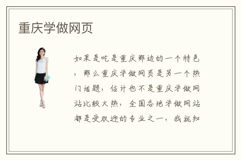 如果是吃是重慶那邊的一個特色,那么重慶學(xué)做網(wǎng)頁是另一個熱門話題,估計也不是重慶學(xué)做網(wǎng)站比較火熱,全國各地學(xué)做網(wǎng)站都是受歡迎的專業(yè)之一,我就知道我一個朋友是學(xué)java編程這塊的,初中畢業(yè)就去學(xué)的,現(xiàn)在也是畢業(yè)好幾年了 在一家互聯(lián)網(wǎng)公司上班,薪資不用說超過我很多,他說做他們這一行業(yè)的大家只看到了光鮮亮麗的一面,他們加班加點的時候也是很辛苦的,壓力也是蠻大的,如果是選擇這個行業(yè),心里一定要強(qiáng)大,所以你在選擇專業(yè)的時候要慎重,一定是自己感興趣的,如果你對做網(wǎng)頁感興趣,準(zhǔn)備去學(xué),要提前了解一下這個學(xué)校綜合實力怎么樣,重慶學(xué)做網(wǎng)頁校內(nèi)比賽也有的啊,就和我們平時的校內(nèi)活動差不多的,這個專業(yè)性多一些,重慶學(xué)做網(wǎng)頁就業(yè)薪資據(jù)說最基礎(chǔ)的是五千左右,當(dāng)然也是根據(jù)市場變化的,你看看重慶那邊平均工資怎么樣