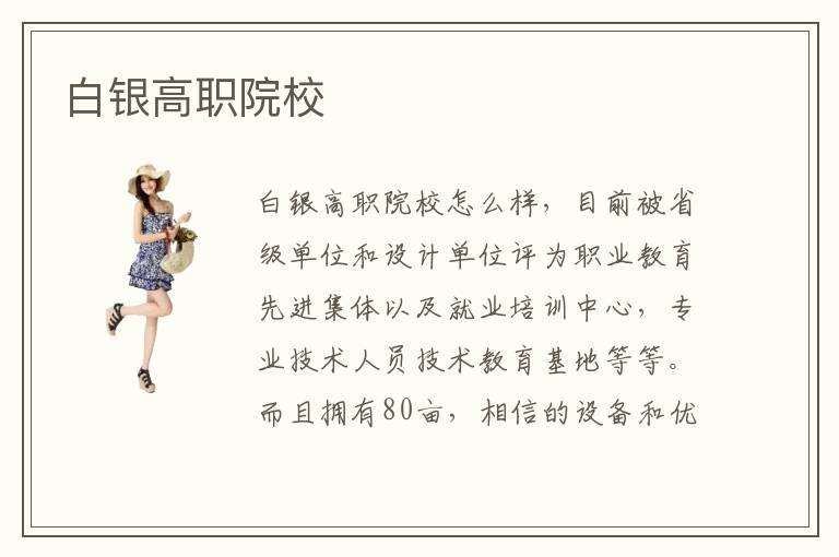 白銀高職院校怎么樣,目前被省級單位和設(shè)計單位評為職業(yè)教育先進集體以及就業(yè)培訓(xùn)中心,專業(yè)技術(shù)人員技術(shù)教育基地等等。而且擁有80畝,相信的設(shè)備和優(yōu)良的資源配備一系列的時間最低,包括實驗樓,教學(xué)樓,綜合樓等等,而且擁有計算機開發(fā),互聯(lián)網(wǎng)電子科技,汽修等專業(yè)的實驗器材和實驗室,有助于讓孩子培養(yǎng)身心的理念以及實踐的精神。白銀高職院校教育資源是非常優(yōu)越的,比如教職工有110元,高級教師14人,其中碩士學(xué)位的教師占60%以上,而且開設(shè)了數(shù)控技術(shù),電工與電氣技術(shù)應(yīng)用,計算機應(yīng)用等等,都是目前非常熱門的行業(yè)。白銀高職院校成立于1984年,具有幾十年的教育經(jīng)驗,是一所集學(xué)歷教育以及職業(yè)培訓(xùn)綜合的職業(yè)技術(shù)培訓(xùn)機構(gòu),目前已經(jīng)先后培訓(xùn)各種人才7000多名,為當(dāng)?shù)氐纳鐣l(fā)展以及經(jīng)濟的建設(shè)提供了人才的資源。