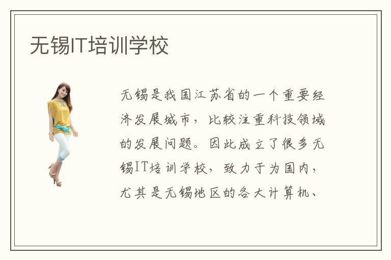 無錫是我國江蘇省的一個重要經(jīng)濟發(fā)展城市,比較注重科技領(lǐng)域的發(fā)展問題。因此成立了很多無錫IT培訓(xùn)學(xué)校,致力于為國內(nèi),尤其是無錫地區(qū)的各大計算機、互聯(lián)網(wǎng)企業(yè)送去大批優(yōu)秀的工程師,默默為無錫經(jīng)濟水平的發(fā)展做出貢獻。興趣是學(xué)習(xí)計算機專業(yè)最有效的動力,無錫IT培訓(xùn)學(xué)校開設(shè)了很多當(dāng)下熱門的計算機專業(yè)課程,學(xué)生們可以挑選他們感興趣的課程進行報名學(xué)習(xí)。