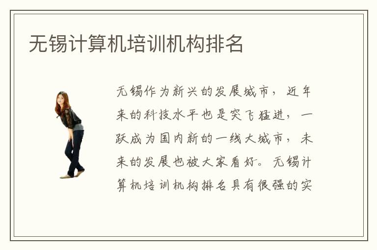 無錫作為新興的發(fā)展城市,近年來的科技水平也是突飛猛進(jìn),一躍成為國內(nèi)新的一線大城市,未來的發(fā)展也被大家看好。無錫計算機(jī)培訓(xùn)計算機(jī)培訓(xùn)機(jī)構(gòu)排名具有很強(qiáng)的實用性,可以在我們對選擇培訓(xùn)機(jī)構(gòu)迷茫的時候,作為一個有建設(shè)性的參考。無錫計算機(jī)培訓(xùn)學(xué)校熱門專業(yè)有哪些?無錫電腦培訓(xùn)機(jī)構(gòu)熱門專業(yè)十分搶手,需要我們提前了解抓緊機(jī)會選擇。計算機(jī)IT無錫培訓(xùn)機(jī)構(gòu)好不好?
