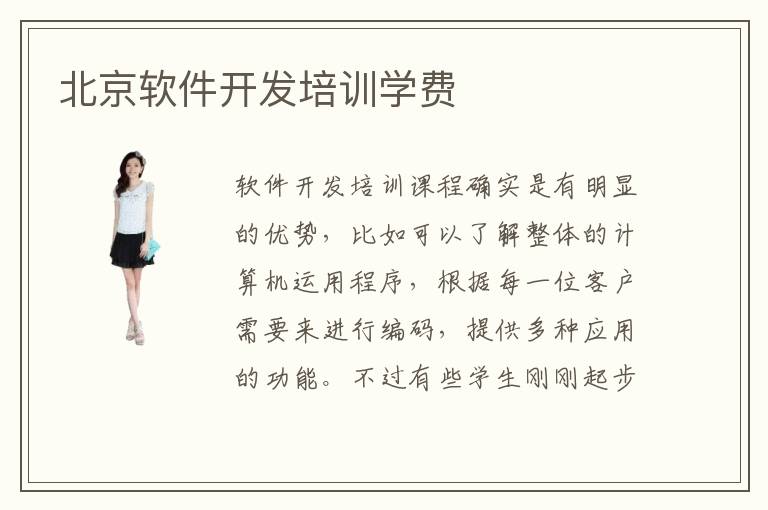 軟件開發(fā)培訓課程確實是有明顯的優(yōu)勢,比如可以了解整體的計算機運用程序,根據(jù)每一位客戶需要來進行編碼,提供多種應用的功能。不過有些學生剛剛起步,并不了解這些真實的應用和技巧,這個時候可以考慮軟件開發(fā)培訓機構(gòu),也許進步會更快。北京軟件開發(fā)培訓學費,北京軟件開發(fā)培訓學費怎么樣,軟件開發(fā)培訓相當熱門,一直在學費方面可能會貴一點,可能在3000到1萬元。不過也要具體看每一個軟件開發(fā)培訓的收費情況,有些培訓機構(gòu)質(zhì)量更好,而且收費也不會太貴,能夠照顧學生的需求,選擇正確的課程培訓方法,因此可以節(jié)省費用。北京軟件開發(fā)培訓學費大概多少,如果是高級的軟件開發(fā)培訓機構(gòu),那么往往在教學設備方面和師資力量方面更加優(yōu)越,因此培訓的費用可能比其他學校更貴,但是由于軟件開發(fā)專業(yè)能力更強,效率更有保障。