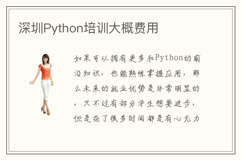 如果可以擁有更多和Python的前沿知識,也能熟練掌握應(yīng)用,那么未來的就業(yè)優(yōu)勢是非常明顯的,只不過有部分學生想要進步,但是花了很多時間都是有心無力,沒有任何成果??赡芫褪怯捎谧詫W能力太過差,或者是沒有特別成熟的水準,因此常常會特別難過,不知道如何突破。那么可以先關(guān)注優(yōu)質(zhì)的Python專業(yè)培訓機構(gòu),了解深圳Python培訓大概費用,然后再做出自己的Python專業(yè)培訓機構(gòu)選擇。深圳Python培訓大概費用貴不貴,如果是沒有太多基礎(chǔ)或者是通過自學的方法,卻一點成果都沒有,可以考慮Python培訓專業(yè)機構(gòu),這些機構(gòu)的費用通常是比較適中的,而且大多數(shù)都透明,很少有隱形費用,所以不要太過于擔心。深圳Python培訓大概費用范圍可能在2000到3萬元之間,但是由于費用有很多影響因素,包括專業(yè)的教學質(zhì)量以及培養(yǎng)學生的成果等等。