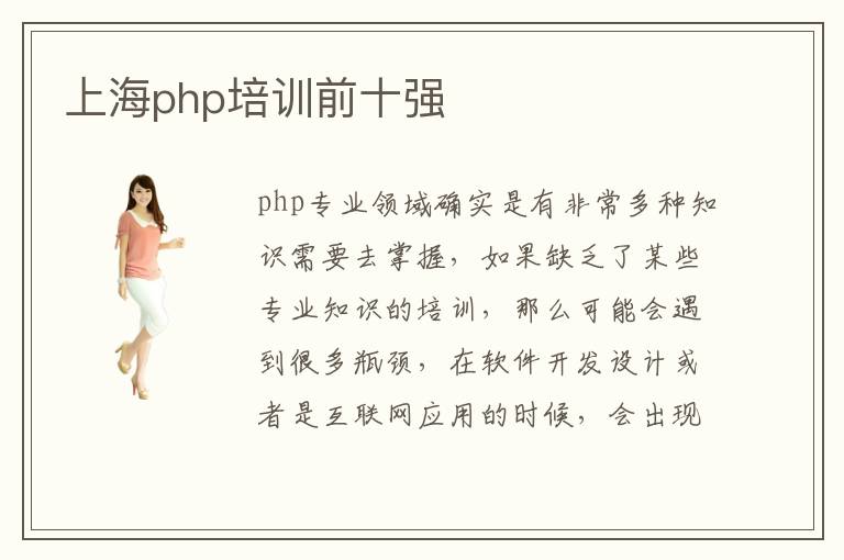 php專業(yè)領(lǐng)域確實(shí)是有非常多種知識需要去掌握,如果缺乏了某些專業(yè)知識的培訓(xùn),那么可能會遇到很多瓶頸,在軟件開發(fā)設(shè)計或者是互聯(lián)網(wǎng)應(yīng)用的時候,會出現(xiàn)很多意想不到的問題,當(dāng)然就會影響個人在未來的發(fā)展。上海php培訓(xùn)前十強(qiáng)大多數(shù)都是比較優(yōu)越的,老師的水平高,可以帶來全方位的服務(wù)、,包括課程體系的設(shè)置以及課程結(jié)果反饋等等,為大家?guī)砣碌妮o導(dǎo)方法。上海php培訓(xùn)前十強(qiáng)如何,其實(shí)都還是具備不錯資源豐富,管理水平高,如果學(xué)生有php培訓(xùn)需要,可以多多對比各種不同的本科專業(yè)機(jī)構(gòu)。上海php培訓(xùn)前十強(qiáng)有哪些,通常排名靠前的php專業(yè)機(jī)構(gòu)有更強(qiáng)的專業(yè)實(shí)力,各種培養(yǎng)的方案都是比較靠譜,能夠給大家?guī)矸浅:玫呐囵B(yǎng)方案,也能夠降低學(xué)習(xí)的壓力,提高學(xué)習(xí)的成果優(yōu)勢。