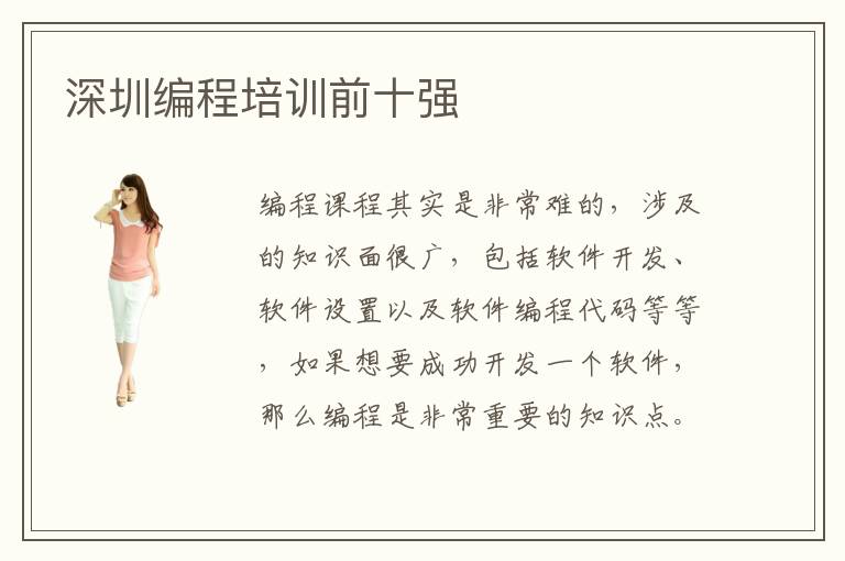 編程課程其實是非常難的,涉及的知識面很廣,包括軟件開發(fā)、軟件設置以及軟件編程代碼等等,如果想要成功開發(fā)一個軟件,那么編程是非常重要的知識點。對于剛接觸的學生而言,如果想要在編程領域有更多進步可以考慮深圳編程培訓前十強,這些品牌的特色鮮明,而且專業(yè)能力強,老師的知識結構更有保障,因此未來也可以收獲出非常優(yōu)秀的成績。深圳編程培訓前十強值得選擇,排名較前的編程培訓機構有很多專業(yè)的成果,口碑方面也是值得稱贊,讓人覺得這些品牌有更強的優(yōu)勢,可信賴程度很高。深圳編程培訓前十強效率也是非常高的,也能針對不同的學員來培養(yǎng),可以用優(yōu)化學員的基礎,也能夠節(jié)省學員時間。有些機構就是考慮到學生的時間,還會提供周末班以及就業(yè)班級,大大提高學習的成果和效益。