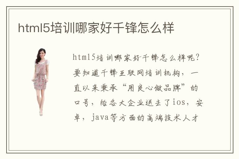 html5培訓哪家好千鋒怎么樣呢?要知道千鋒互聯(lián)網培訓機構,一直以來秉承“用良心做品牌”的口號,給各大企業(yè)送去了ios,安卓,java等方面的高端技術人才。千鋒擁有最權威的教學團隊,保障就業(yè)率,與國內上百家互聯(lián)網企業(yè)合作,畢業(yè)的學員高薪資,強技術,無一不獲得了各大企業(yè)的肯定與贊賞。如今,千鋒在不斷的發(fā)展,在北京,上海等等各大城市都開設了分公司。