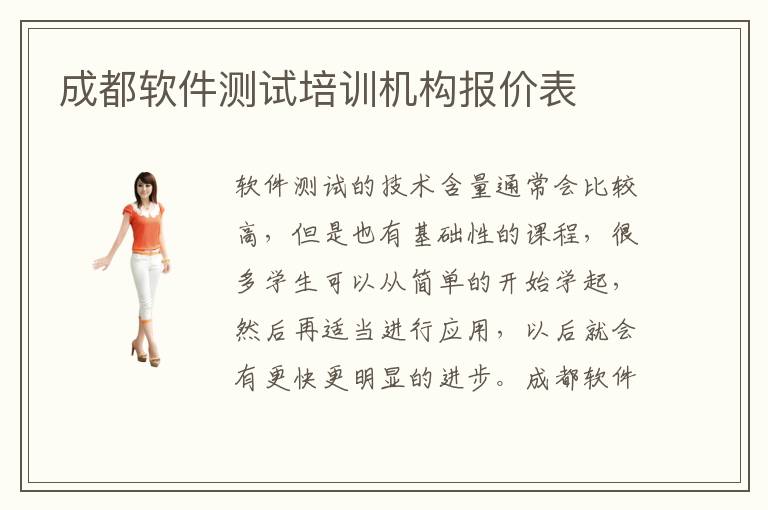軟件測試的技術(shù)含量通常會比較高,但是也有基礎(chǔ)性的課程,很多學(xué)生可以從簡單的開始學(xué)起,然后再適當(dāng)進(jìn)行應(yīng)用,以后就會有更快更明顯的進(jìn)步。成都軟件測試培訓(xùn)機構(gòu)報價表,大多數(shù)會在3000到1萬元之間,但是課程內(nèi)容不同,因此并不是完全固定,有些軟件測試培訓(xùn)機構(gòu)老師非常好,有多年輔導(dǎo)學(xué)生的經(jīng)驗,各種學(xué)生的問題依然是游刃有余去應(yīng)對。軟件測試培訓(xùn)機構(gòu)質(zhì)量會有保證,很多軟件機構(gòu)等會重視提高教育的質(zhì)量,就是為了吸引更多學(xué)生報名參加這些課程。如果教育的質(zhì)量很普通,而且學(xué)生也常常會出現(xiàn)不滿意的情緒,或者是負(fù)面的評價,當(dāng)然就會影響軟件測試培訓(xùn)機構(gòu)的口碑,以后的學(xué)生可能就不太愿意考慮這些機構(gòu)。因此軟件測試培訓(xùn)機構(gòu)也很擔(dān)心,如果教育質(zhì)量不高,以后的生意就做不下去。