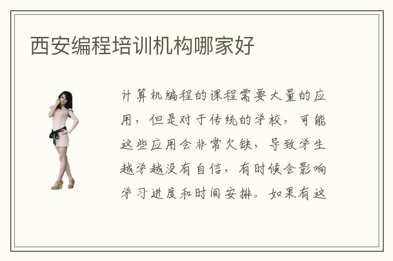 計(jì)算機(jī)編程的課程需要大量的應(yīng)用,但是對(duì)于傳統(tǒng)的學(xué)校,可能這些應(yīng)用會(huì)非常欠缺,導(dǎo)致學(xué)生越學(xué)越?jīng)]有自信,有時(shí)候會(huì)影響學(xué)習(xí)進(jìn)度和時(shí)間安排。如果有這些問題,可以選擇輔導(dǎo)機(jī)構(gòu),了解西安編程培訓(xùn)機(jī)構(gòu)哪家好,掌握每一個(gè)輔導(dǎo)機(jī)構(gòu)的技術(shù)能力和擅長之處,根據(jù)自己的計(jì)算機(jī)編程專業(yè)需要來考慮課程。雖然在考慮計(jì)算機(jī)編程培訓(xùn)輔導(dǎo)班時(shí),要重視編程培訓(xùn)機(jī)構(gòu)就業(yè)優(yōu)勢(shì)以及編程培訓(xùn)機(jī)構(gòu)效果,因?yàn)楹芏鄬W(xué)生在平常就是沒有太多技術(shù)培訓(xùn),就業(yè)的技能不明顯,以后找工作就會(huì)相當(dāng)困難,優(yōu)勢(shì)也體現(xiàn)不出來。另外有很多計(jì)算機(jī)編程機(jī)構(gòu)可能就是魚龍混雜,質(zhì)量參差不齊,如果找到效果不太好的培訓(xùn)班,那么學(xué)生的學(xué)習(xí)進(jìn)步會(huì)大大受到干擾,以后的計(jì)算機(jī)編程學(xué)習(xí)進(jìn)度就會(huì)有明顯的障礙。