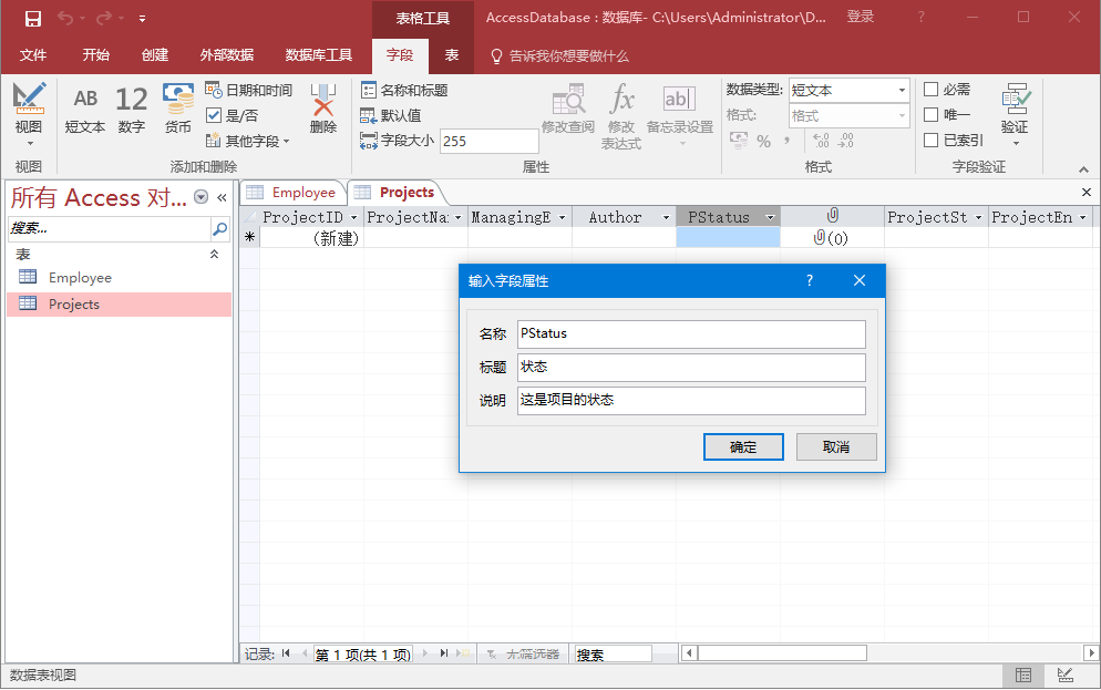 最后保存這張表,給這張表起一個(gè)名字:Projects ,整個(gè)過(guò)程如下 -