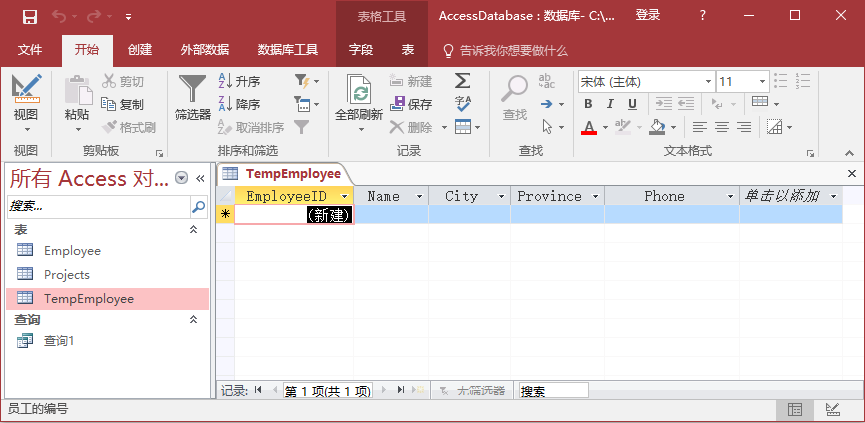 4種不同類型的操作查詢 -可以使用添加查詢從一個或多個表中檢索數(shù)據(jù),并將該數(shù)據(jù)添加到另一個表。 讓我們創(chuàng)建一個新的表,它使用Employees表中數(shù)據(jù)來填充。它用于演示目的的臨時表。