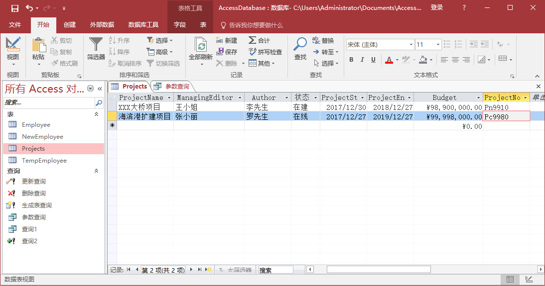 假設(shè)Projects 表中有以下數(shù)據(jù) -