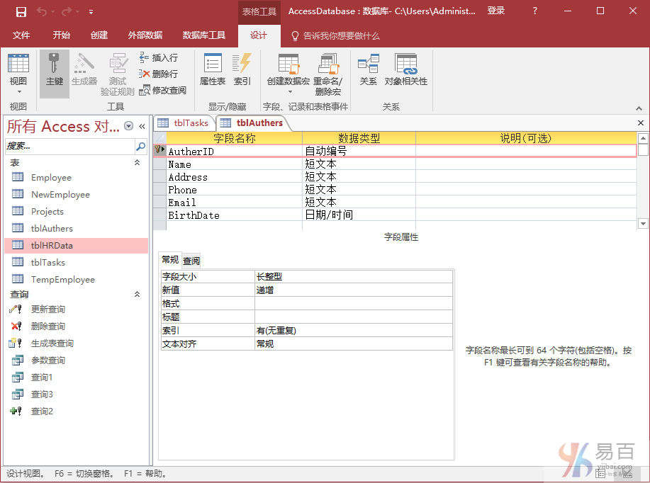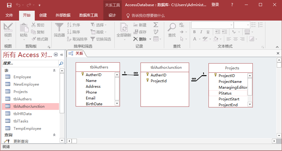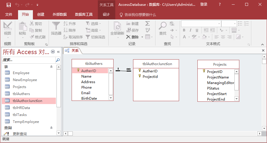 這兩個字段的組合是表的唯一標識符。 現(xiàn)在把這個表保存為 - tblAuthorJunction。