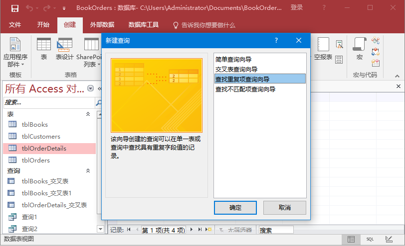 如果看到以下屏幕截圖,則可以選擇四種不同的向?qū)А_x擇查找重復(fù)查詢向?qū)?/strong>,然后單擊 確定。