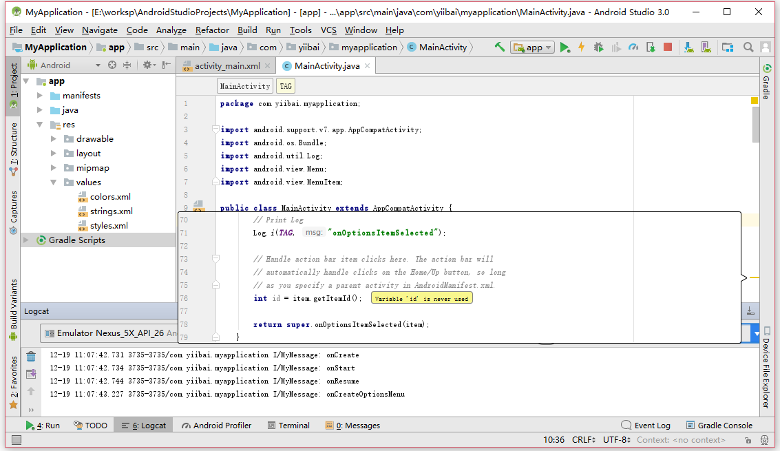 重新運(yùn)行應(yīng)用程序,并且看到記錄在logcat窗口上的消息。
