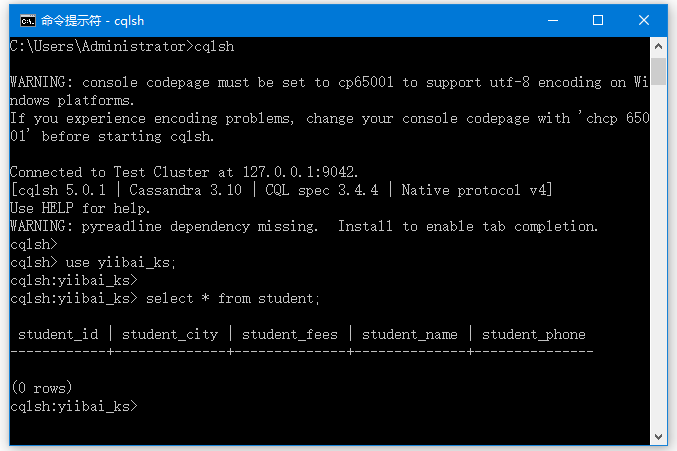 cqlsh:yiibai_ks> ALTER TABLE student DROP (student_fees, student_phone);