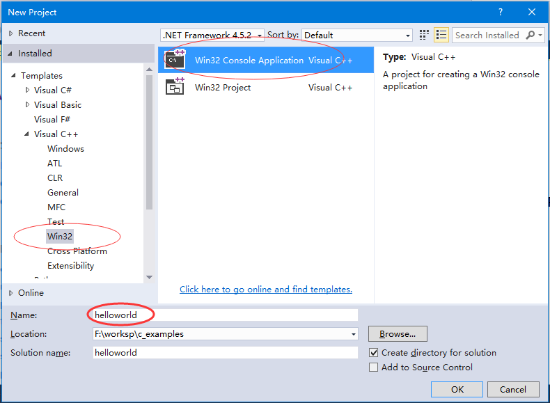 首先打開Visual Studio 2015,創(chuàng)建一個名稱為:helloworld的Win32 Console Application 的工程,如下圖所示 -