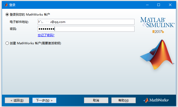 第三步:登錄到MatWorks帳號,填寫你注冊的賬號并點擊下一步,如下圖所示 -