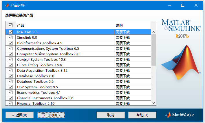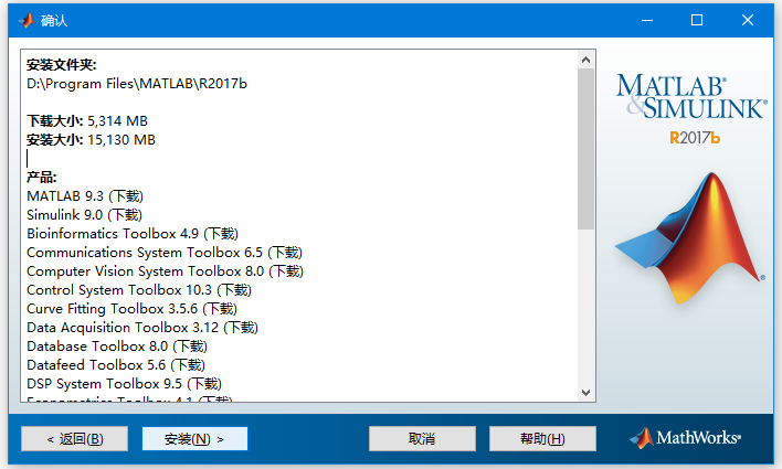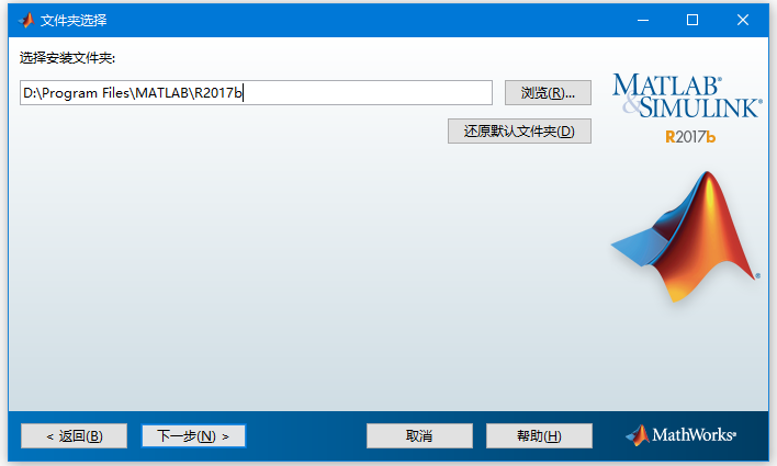 第五步:選擇軟件安裝的位置(D:\Program Files\MATLAB\R2017b)并點擊下一步,如下圖所示 -