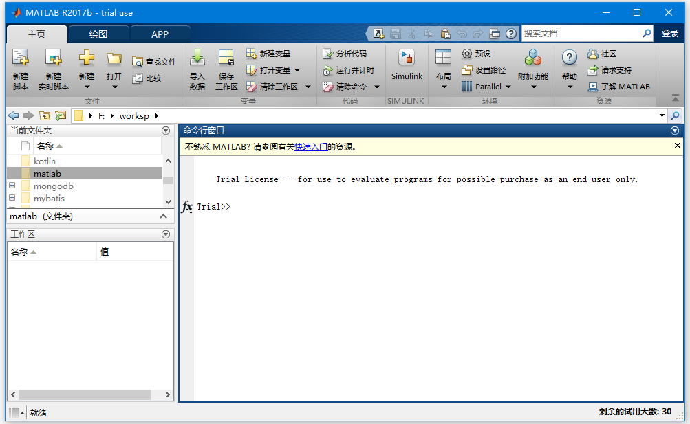 注: 由于這里只是學(xué)習(xí)和研究MATLAB,所以注冊一個賬號然后申請一個免費試用版。