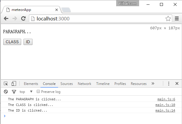 為了驗證這一點,我們可以先點擊 PARAGRAPH, 然后點 CLASS 按鍵,最后點擊 ID 按鈕. 我們將得到下面的控制臺日志。