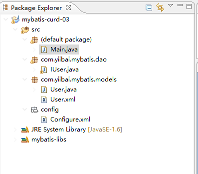 我們首先來(lái)創(chuàng)建一個(gè)工程:mybatis-curd-03,與第一節(jié)中介紹的環(huán)境配置一樣,加入所需的 jar 包:mysql-connector 和 mybatis3.jar。配置 src/config/Configure.xml,其文件內(nèi)容如下: