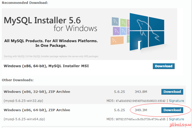 在任何版本的 Windows 默認安裝是現(xiàn)在比以前要容易得多,MySQL巧妙地打包安裝程序。只需下載安裝包,隨地把它解壓縮,并運行 mysql.exe. 下載地址:http://dev.mysql.com/downloads/ 頁面如下圖所示: